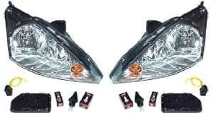 This kit fits 2000 to 2004 Focus, and states it's optional equipment on the SVT Focus (it leaves out the first Focus these lights were available, the Mach Edition ZTS). Please note that the Ford Racing kit is for Off Road Use Only. You can also order the parts separately, but it is highly recommended you use the Ford Racing kit because the wiring has been developed by engineers at Ford Racing/SVT. If you need a part listing because you performed the "hacked" conversion, please visit Step 1 of the Hacked Conversion Process. Note: We have heard rumours that Ford Racing will discontinue the H.I.D. Headlamp Kit. If you're on the fence in wanting this kit, now is the time to buy it before they are sold out! |