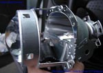Once the shield is loose, carefully remove it. the edges are sharp and may scratch the projector bowl surface or cut up your hand (click on the images for a closer view). |